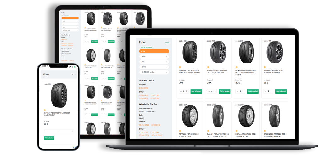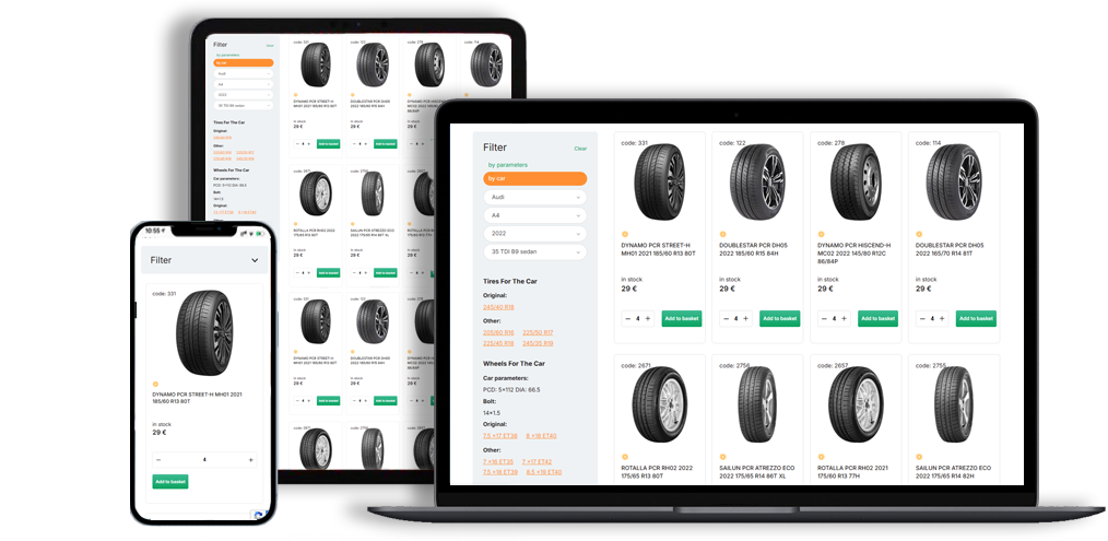 We developed a custom tires and wheels platform with automated supplier integrations and advanced catalog logic.